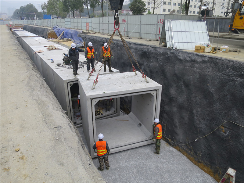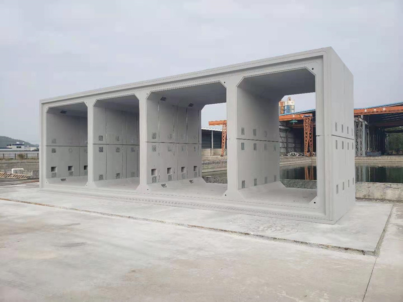 公司混凝土制品生產部門主要生產城市綜合管廊、電力管廊、儲水槽及排水暗渠用大型混凝土箱涵,預制組合式鋼筋混凝土檢查井、各類生態型護岸、護坡,及城市景觀用混凝土制品